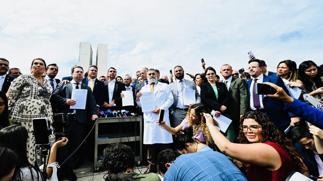 Senadores e deputados de oposição protestaram, nesta terça-feira (5), contra a prisão domiciliar do ex-presidente Jair Bolsonaro (PL).